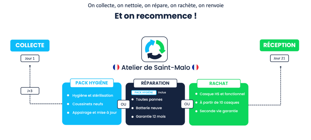 Le constat est pragmatique : gérer en interne le nettoyage, la stérilisation, le diagnostic et la réparation de casques audio à grande échelle demande du temps et un outillage spécifique. Sans solution adaptée, le renouvellement reste souvent le chemin le plus court.