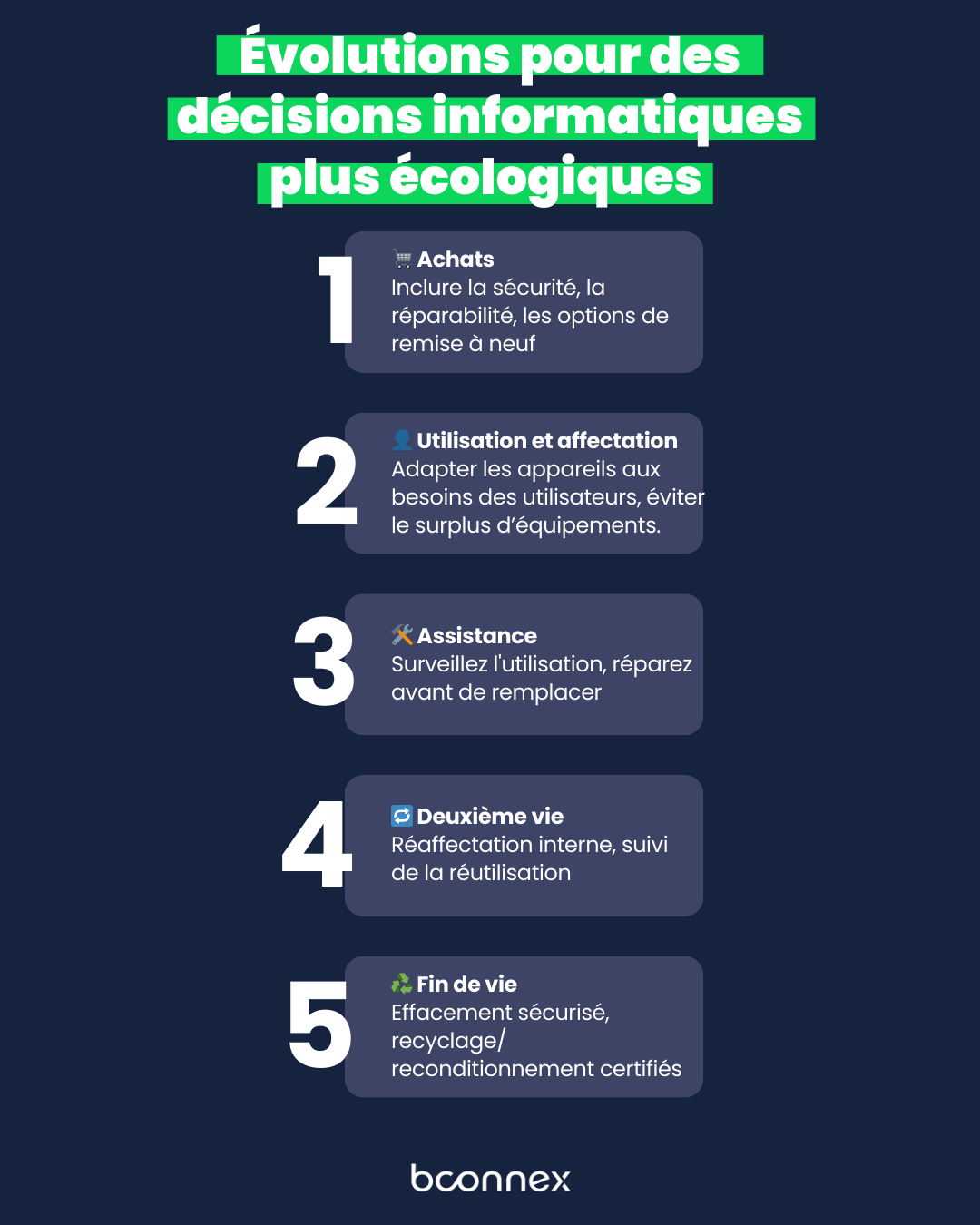 En résumé, grâce à mobilehub, bconnex aide les organisations à rendre la durabilité mesurable, transformant chaque décision IT en contribution RSE visible et reportable.